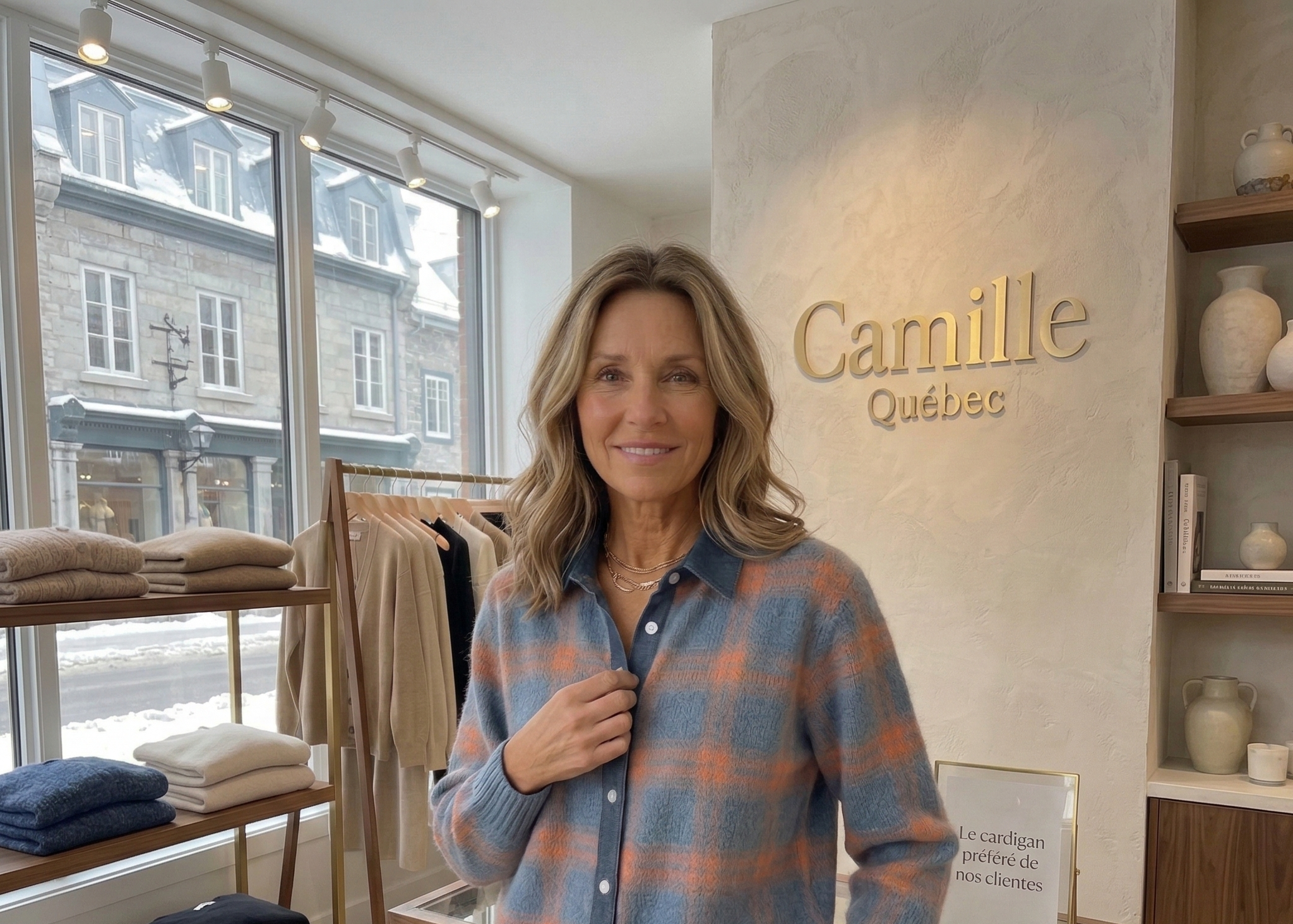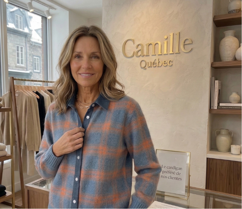 Je m’appelle Camille Dubois, et Camille Québec est née d’un besoin très personnel. Pendant longtemps, je ne me reconnaissais plus dans les vêtements que je trouvais : trop compliqués, parfois inconfortables, ou simplement pas faits pour mon quotidien. Je voulais des pièces simples, élégantes, dans lesquelles je me sens bien sans devoir réfléchir le matin. Alors j’ai commencé, tranquillement, à chercher autrement. À sélectionner des vêtements pour moi — des coupes qui tombent bien, des matières agréables, des pièces faciles à porter du matin au soir. Et sans vraiment m’en rendre compte, des femmes autour de moi ont commencé à me demander où je trouvais mes vêtements.